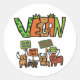 El diseño vegano muestra la palabra hecha de verduras con guisantes, zanahorias, patatas y frutas. Debajo hay una protesta animal con pancartas que motivadoras un estilo de vida sin carne basado en plantas. Trae el mensaje vegano de una manera divertida y amigable.