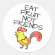 Pegatina Redonda Vegan a comer frutas no amigos lindo gallo