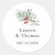 Este pegatina presenta un sencillo diseño boda botánico de invierno con un toque minimalista, con una pizca de pino, mistletoe y bayas en tonos acuáticos rojos y verdes. Personalice la plantilla de texto con los nombres de la novia y del novio y la fecha de boda. Este pegatina puede ser usado como sobres sellos en invitaciones de boda y notas de agradecimiento, o como pegatinas de favor por regalos de agradecimiento y por llevar en su boda u otros eventos.