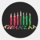 Kwanzaa es una semana de feriado que se observa en Estados Unidos en honor a la cultura y herencia universal africana. Es una celebración de la familia y la comunidad. Las siete velas representan los siete principios de Kwanzaa, cada uno en un día de las celebraciones. Primero está Umoja (unidad) para luchar por y mantener la unidad en la familia, la comunidad, la nación y la raza. Segundo es Kujichagulia (autodeterminación) para definirnos, llamarnos a nosotros mismos, crear para nosotros mismos y hablar por nosotros mismos. Tercero Ujima (trabajo colectivo y responsabilidad) para construir y mantener unida nuestra comunidad y hacer de los problemas de nuestra hermana y de nuestro hermano nuestros problemas y resolverlos juntos. Cuarto es Ujamaa (economía cooperativa) para construir y mantener nuestras propias tiendas, tiendas y otros negocios juntos. Quinto es Nia (propósito) de hacer de nuestra vocación colectiva la construcción de nuestra comunidad para restaurar a nuestro pueblo a su tradicional grandeza. Sexto es Kuumba (creatividad) para hacer todo lo posible para dejar a nuestra comunidad más bella y beneficiosa de lo que la heredamos. Y por último, séptimo es Imani (fe) creer con nuestros corazones en nuestro pueblo, nuestros padres, nuestros maestros, nuestros líderes y la rectitud y victoria de nuestra lucha.