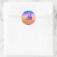 Imagen colorida y simple de un velero con un fondo de agua brillante y puesta de sol.