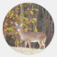 Pegatina Redonda Venado frente al árbol amarillo otoñal
