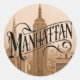 Pegatina Redonda Vendimia de NYC de Manhattan