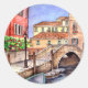 Pegatina Redonda Venecia - acuarela de plumas y lavado