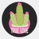 Pegatina Redonda Verdadero amor Kawaii cactus verde y rosa