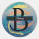 Pegatina Redonda Verde azulado, Naranja, amarillo, pincel coral Mon