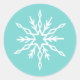 Pegatina Redonda Verde azulados copos de nieve blancos