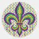 Pegatina Redonda Verde morado Mardi Gras fleur de lis