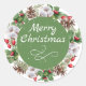 Pegatina Redonda Verde Rojo Floral Feliz Navidad