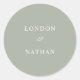 Nuestro "Simple Sage Green Greenery Classic Round Pegatina" presenta un fondo verde claro con una tipografía blanca clásica, ideal para crear una suite boda que refleja la belleza de la naturaleza. Deja que tu amor florezca con este diseño floral; personaliza con tu nombre. ✨ Visita nuestra tienda en GrowSmartPaperie para ver los artículos coincidentes en el siguiente enlace - https://bit.ly/44U5IJJ ✨