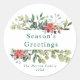 Pegatina de vacaciones de Season's Greetings sencillo. Este rústico pegatina de vacaciones acuático cuenta con vegetación de invierno y flores rojas. El texto moderno puede ser completamente personalizado con su elección de saludo, apellido y año. Transforme su temporada de vacaciones con esta impresionante etiqueta. Difunde alegría y calidez en esta temporada de vacaciones con nuestra hermosa etiqueta. Es perfecto para enviar tu amor a amigos y familiares. Feliz Navidad!