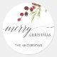 Este pegatina vacacional presenta las bayas pintadas de color rojo y la rama de pino con las palabras "Feliz Navidad". Personalizó esto agregando su propio texto.