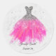 Pegatina Redonda Vestido rosa purpurina plata dulce dieciséis
