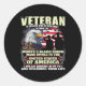Pegatina Redonda Veterano escribió en blanco cheque familia de vete