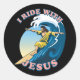 Pegatina Redonda Viajar con Jesús | Surfing Jesus Ilustracion