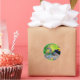 PEGATINA REDONDA VIBRACIONES DE MATERIA, MUJER FRACTAL EN AMARILLO