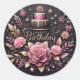 This vibrant birthday sticker features elegant pink floral artwork, a stylish cake illustration, and a bold “Happy Birthday” text on a classy black background. Perfect for gifting, party décor, scrapbooking, goodie bags, and packaging. Its high-quality design appeals to a worldwide audience and adds a touch of beauty to any celebration. Ideal for birthdays of all ages—make every moment look magical!