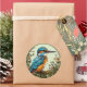 Un ilustracion cautivador de un ave kingfisher con plumas coloridas en medio de intrincados detalles florales. La composición exuda un sentido de belleza, elegancia de la naturaleza y finura artística.