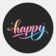 Pegatina Redonda Vibrant Pastel Gradient HAPPY Typography - Modern