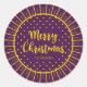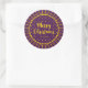 Pegatina Redonda Vibrante Purple Starburst Script Feliz Navidad