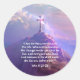 Celebre al Cristo resucitado decorando los sobres de sus tarjetas de saludo de Pascua, artículos para fiestas, manualidades o regalos con estas hermosas calcomanías redondas que muestran una Cruz glorificada vacía en la cima de una montaña junto con el versículo bíblico Juan 11:25-26 que exalta a Jesús como la Resurrección y la Vida que da vida eterna a aquellos que ponen su fe en Él como Redentor, Salvador y Señor. Perfecto para nutrir la fe y la esperanza en las preciosas promesas de Cristo y su futuro regreso durante la Semana Santa y durante todo el año. Disponibles en dos tamaños y acabado brillante o mate.
