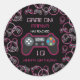 Pegatina Redonda Videojuego Neon Pink Girls Birday Party
