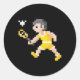Pegatina Redonda Videojuego Retro 80 Pixel Art Badminton Player