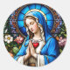 Pegatina Redonda Vidrio manchado de la Virgen María Católica
