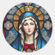 Pegatina Redonda Vidrio manchado de la Virgen María Católica
