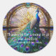 Pegatina Redonda Vidrio Manchado De Pavo Real Gracias Pegatinas De