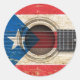 Pegatina Redonda Vieja guitarra acústica con bandera de Puerto Rico
