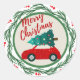 Pegatina Redonda Viejo coche rojo feliz navidad