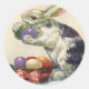 Pegatina Redonda Viejo conejo de Pascua victoriano y huevos de Pasc
