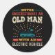 Pegatina Redonda Viejo gracioso con vehículo eléctrico EV Regalo re