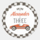 Pegatina Redonda Viñeta de Carrera Tres Cumpleaños