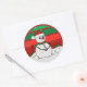 Pegatina Redonda Vintage de Snowman Rainbow Snowflakes Green