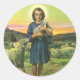 Pegatina Redonda Vintage Jesucristo el Pastor con Cordero Bebé