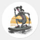 Pegatina Redonda Vintage Sunset Clown Paddleboarding