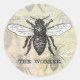 Pegatina Redonda Vintage Worker Bee Ilustracion Art