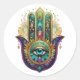 Pegatina Redonda Violet Green Gold Petals Hamsa Turquoise Third Eye