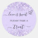 Un elegante fondo violeta de color lavanda, decorado con confeti. Con el texto: El amor es dulce, por favor tómate un regalo, con un corazón pequeño. Personalice y agregue sus nombres.