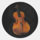 Este pegatina presenta una vida clásica de un viejo violín elegante. Este instrumento elegante es esencialmente una caja de madera hueca con extremos redondeados, dos agujeros elegantes y un centro estrecho. Los cuatro conjuntos de cuerdas se extienden desde un soporte de cadena en la parte inferior del cuerpo sobre un puente elevado hasta el extremo del cuello estrecho, o el diapasón donde las cuatro cadenas se insertan en una caja pegada y se mantienen allí con clavijas. Las clavijas se utilizan para afinar el violín. Cuando el arco se dibuja a través de las cuerdas en el cuerpo del violín, ¡produce una música increíble y mágica! Los magníficos tonos marrones dorados, casi naranjas, están decorados con un elegante tejido de terciopelo negro.