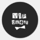 Tarjetas VIP Guest, mousepads, cadenas de claves, y más con texto blanco y diseño de corbata de arco en un fondo negro.