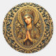 Pegatina Redonda Virgen María de la reverencia dorada