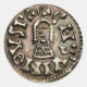 Figura humana rodeada de letras. Moneda de oro del siglo VII utilizada por los visigodos en España.