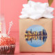 Pegatina Redonda Vista del horizonte de Chicago con reflexión