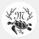 Pegatina Redonda Vista lateral de silueta de tortuga del mar Negro