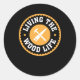 Pegatina Redonda Viviendo el diseño de madera