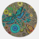 Pegatina Redonda Volar, volar libélula sobre marrón