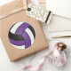 Pegatina Redonda Voleibol púrpura, blanco y negro